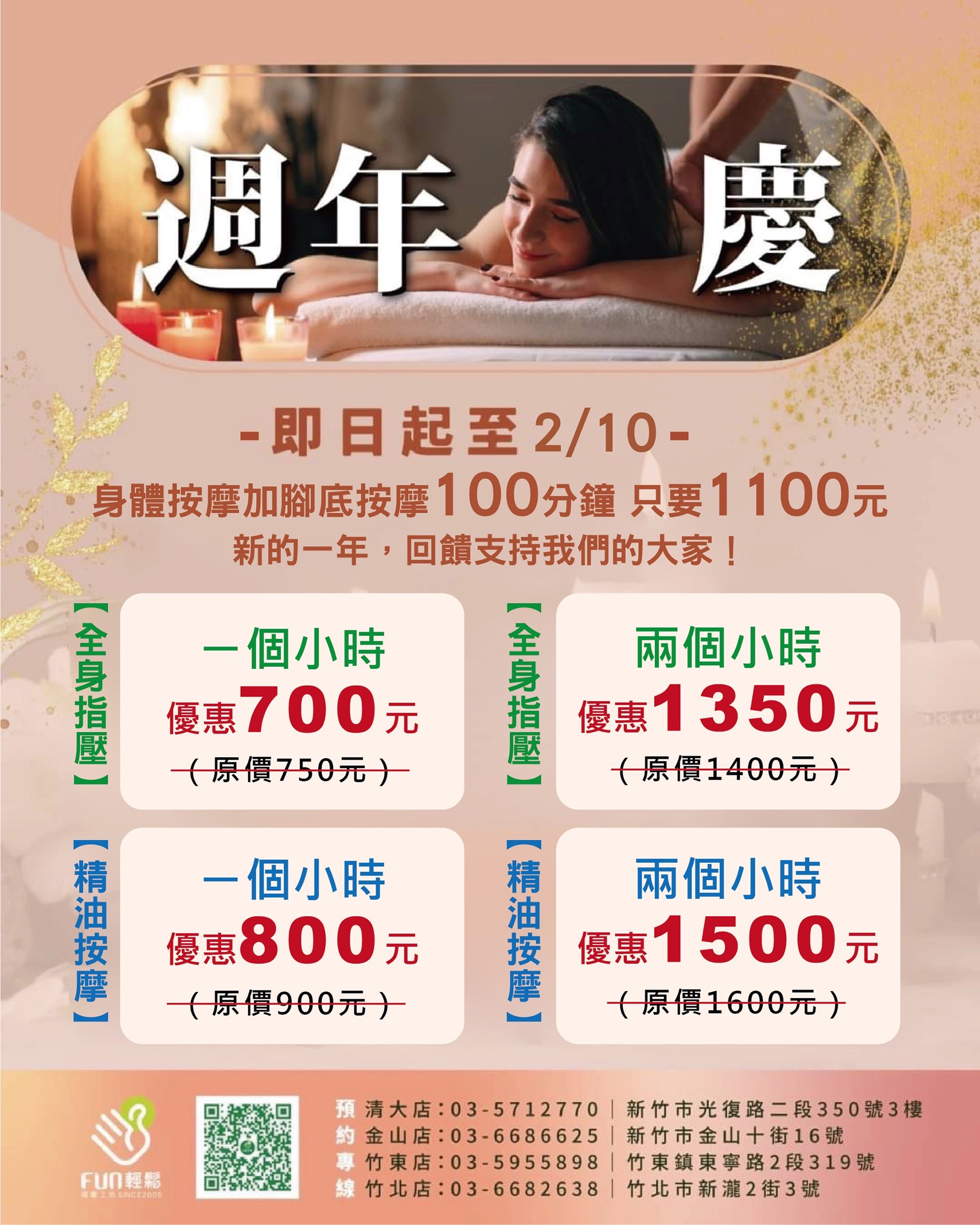 Fun輕鬆指壓按摩 16 週年慶,優惠直接狂撒到2/10!�📍12/8~02/10